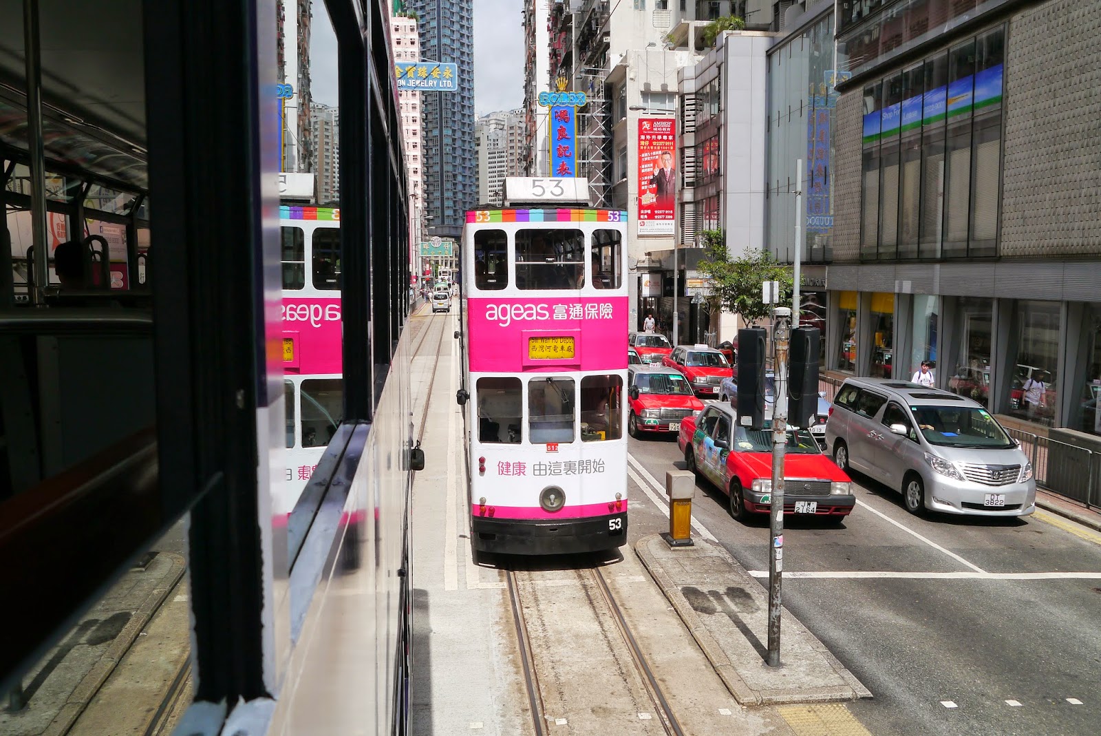 Un petit compte rendu de trois jours de balades dans la ville. On commence par l'ouest de l’île, les "vieux" quartiers, là où les anglais se sont installés en premier lieu. Hormis quelques réminiscences anglaises par ci par là, tout ressemble plus ou moins à la photo ci-dessous. D'immenses et étroites tours (parfois assez décrépies) qui s’élèvent, et en dessous tout en bas au bord de la rue des magasins, bouibouis et 7eleven (bien sur), des bus assez typiques, des tramways au régime et beaucoup de monde dans les rues!